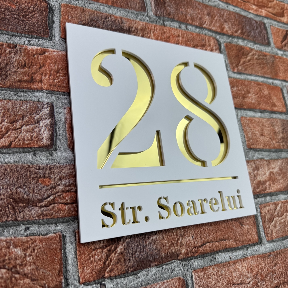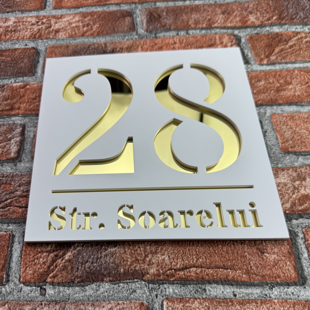Disponibila in variante elegante precum Alb Mat si Oglinda Auriu, aceasta placuta aduce un plus de rafinament. Fiecare detaliu este realizat cu atentie, astfel incat numarul casei sa fie clar si lizibil, chiar si in conditii de lumina redusa. Alegerea culorilor premium permite o integrare perfecta cu fatada, indiferent de nuanta zidului sau de stilul decorativ.