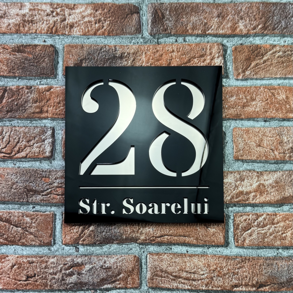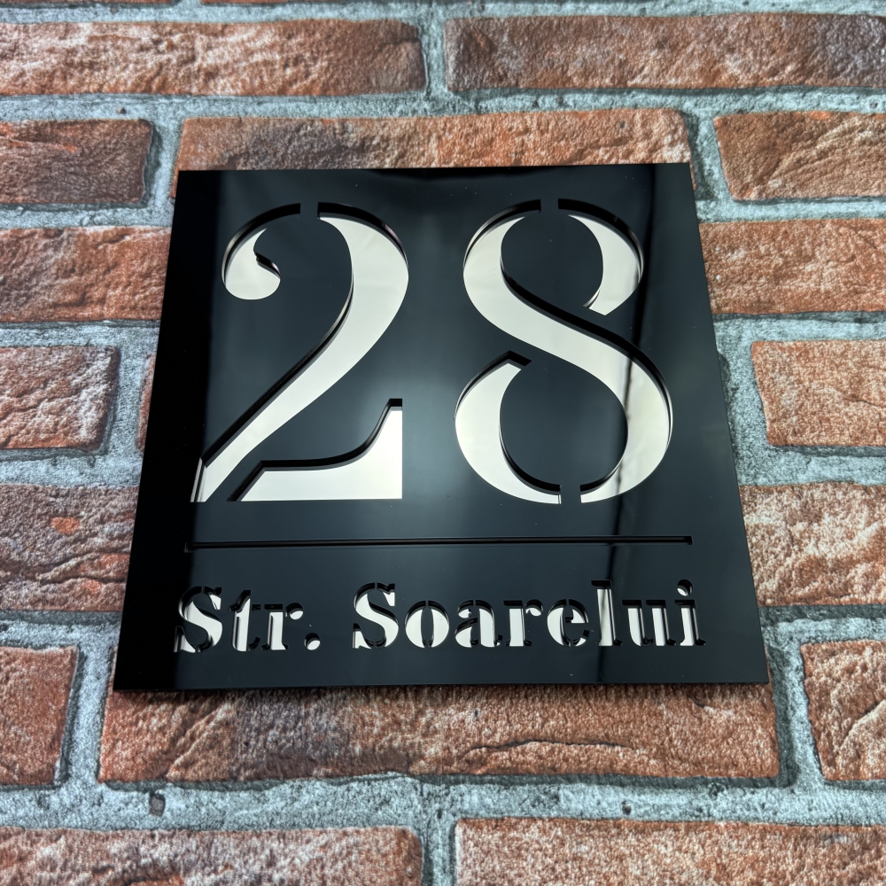 Pe langa aspectul estetic, aceasta placuta este si functionala. Dimensiunea de 19.5 x 19.5 cm garanteaza ca numarul este usor de identificat de vizitatori, curieri sau servicii de urgenta. Alegerea intre Negru Lucios si Oglinda Auriu iti permite sa personalizezi casa exact asa cum iti doresti, transformand un element practic intr-un detaliu de design memorabil.