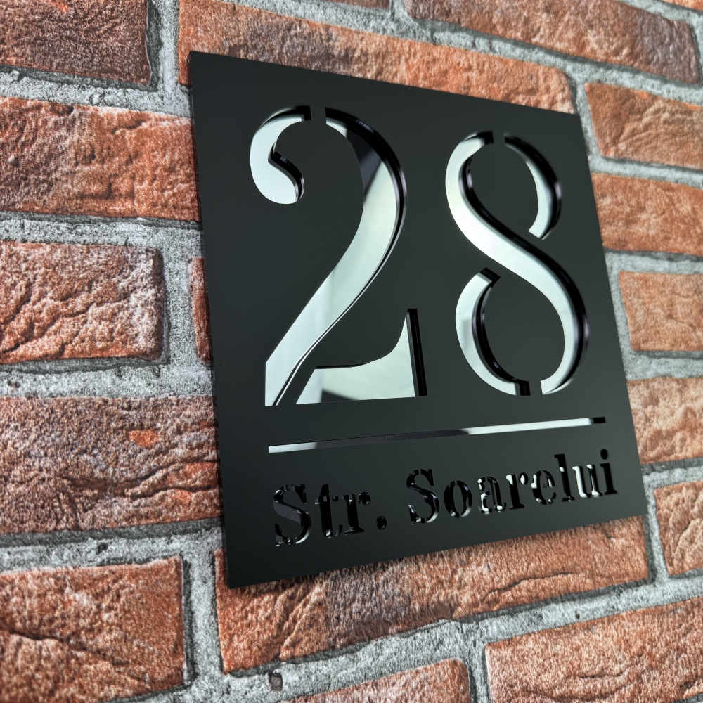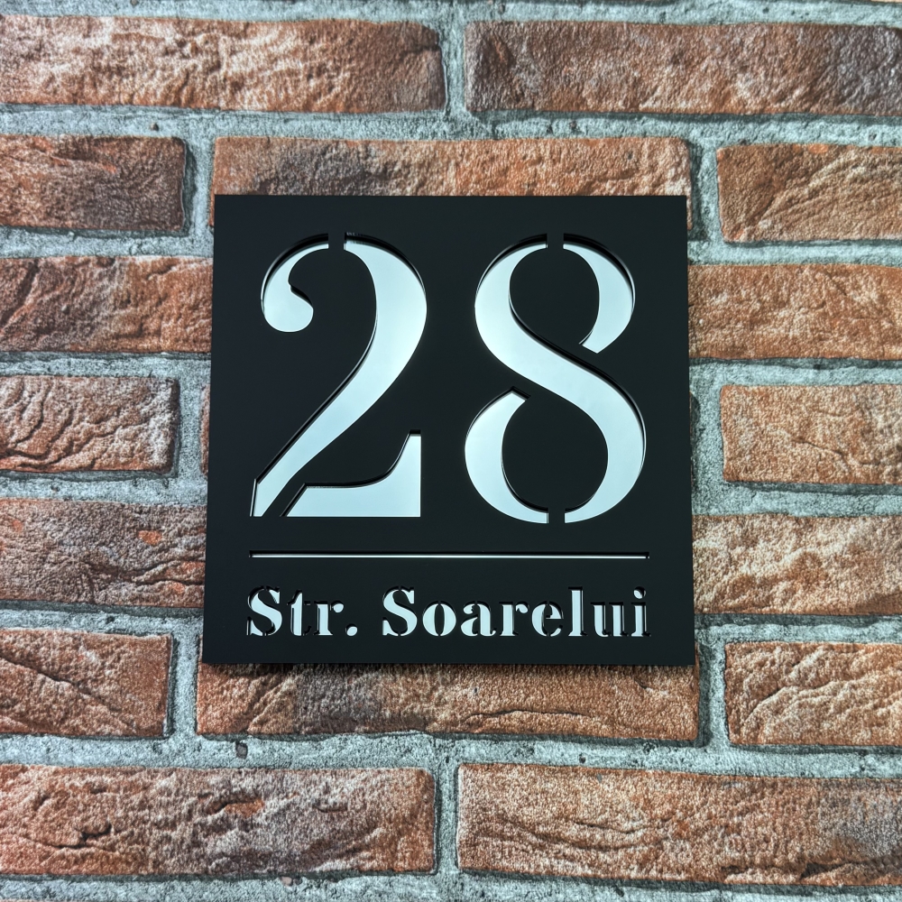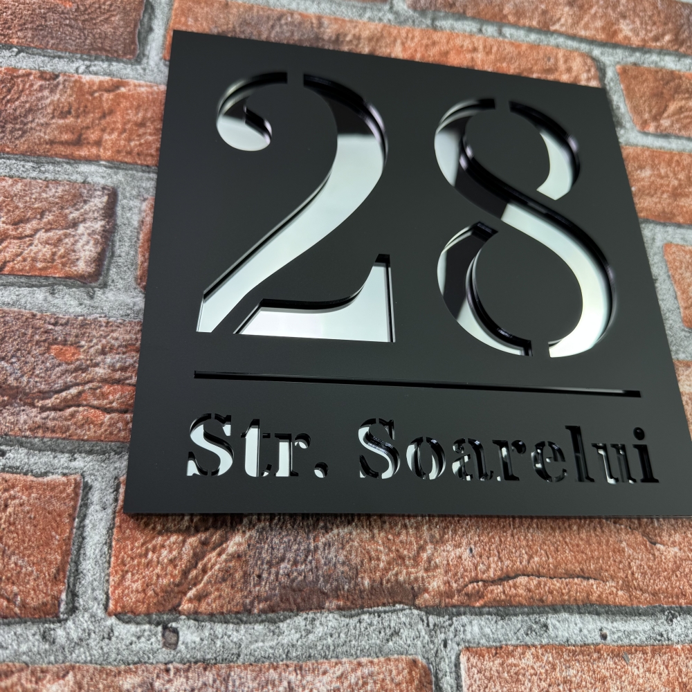 Disponibila in variante elegante precum Negru Mat si Oglinda Argintiu, aceasta placuta aduce un plus de rafinament. Fiecare detaliu este realizat cu atentie, astfel incat numarul casei sa fie clar si lizibil, chiar si in conditii de lumina redusa. Alegerea culorilor premium permite o integrare perfecta cu fatada, indiferent de nuanta zidului sau de stilul decorativ.